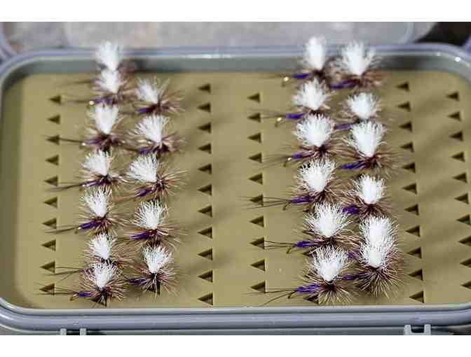 Both sides of this Fly Fisher’s Place fly box are full of beautiful, effective fishing flies tied by RiverKeeper Flies. There are 54 flies—a dozen each: