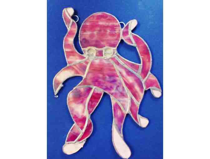Handmade stained glass Octopus ornament made by local artist Deepsea Designs by Betty in Cape Cod, MA.