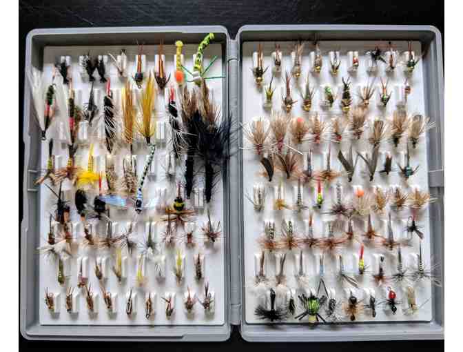 Fly box with 128 flies. Perfect go to box of flies for your next fishing adventure!