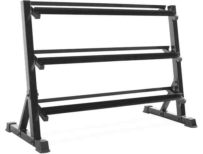 The cap 3-tier dumbbell rack is perfect for organizing, and getting your all your dumbbells off the floor. This 51-inch wide rack has convenient angled design so you can grab each dumbbell with ease. Accommodates all dumbbell styles and sizes. Durable powder-coated finish for scratch resistance.