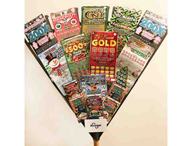 Rake in the cash! Winner recieves a brand new rake with lottery scratch off tickets and a $20 Kroger Gift Card. The winning bidder receives the chance to win even BIGGER!