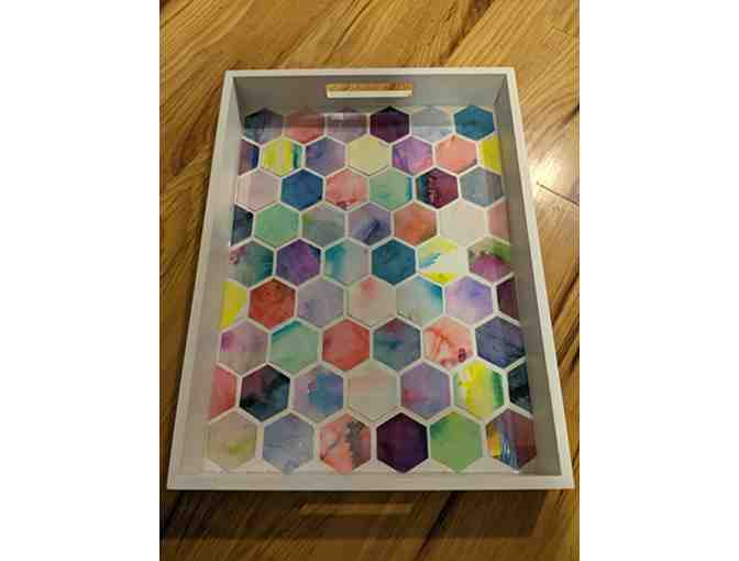 Decorative Serving Trays! Take your hosting game to the next level and wow your guests with these beautiful serving trays! Made with love and sealed with food-grade silicone caulk, these stunningly colorful trays would make a perfect wall-mounted art piece, but their sturdy construction also makes them ready for action. Bid now to bring home a piece of your child's history!