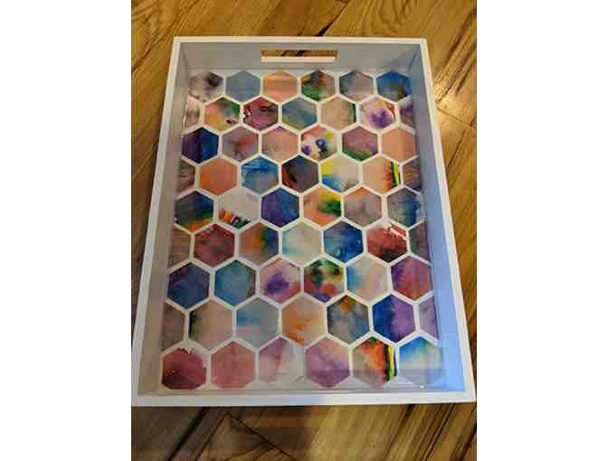 Decorative Serving Trays! Take your hosting game to the next level and wow your guests with these beautiful serving trays! Made with love and sealed with food-grade silicone caulk, these stunningly colorful trays would make a perfect wall-mounted art piece, but their sturdy construction also makes them ready for action. Bid now to bring home a piece of your child's history!