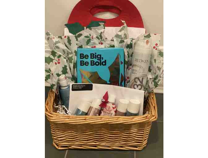 $40 gift card to North Avenue Salon, High Amplify shampoo, conditioner, and Miracle Creator by Matrix, Redken Triple Pure 32 Hairspray, travel size Hempz Peppermint Vanilla Swirl Body Moisturizer, Tigi Custom Care Smooth Booster 3.04 oz, 2 travel size TIGI Custom Care Moisture Shampoo and 2 TIGI Custom Care Moisture Conditioner.