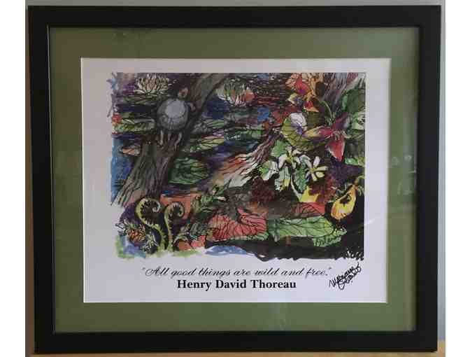 "All good things are wild and free," said Henry David Thoreau, who is honored with this beautiful print by Concord, Massachusetts, native Marianne Orlando. Orlando is a self-trained illustrator whose Thoreau-themed art, including posters and postcards, is sold at The Shop at Walden Pond.
