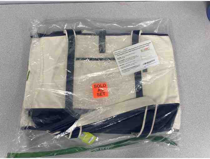 - CONVENIENT: Length of handles are optimized for both hand and shoulder carry. The bag comes with 2 unzipped pockets, 1 zippered pocket, 4 bottle holders, and velcro closure.