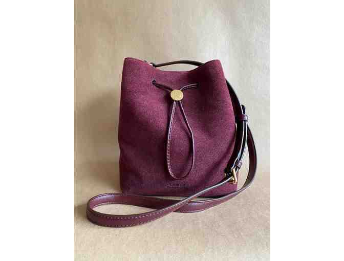 Ralph Lauren - maker of the finest leather goods - we have this lovely hobo bag in maroon suede with a leather trip. Great for on the go - any outfit or coat will go with.