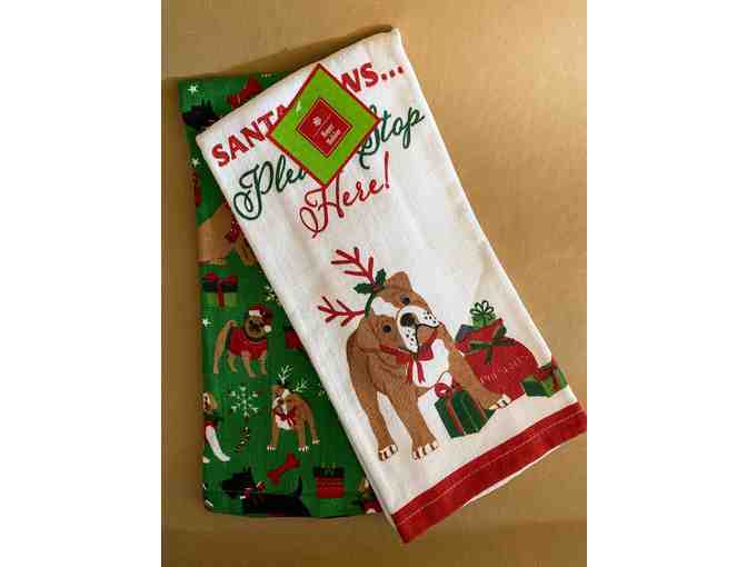Well of course Santa will stop at your house! And you need to cheer it up this holiday season with this set of two adorabull dish towels. Don't wait! Bid now!