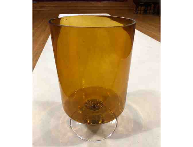 Amber round glass vase on pedestal