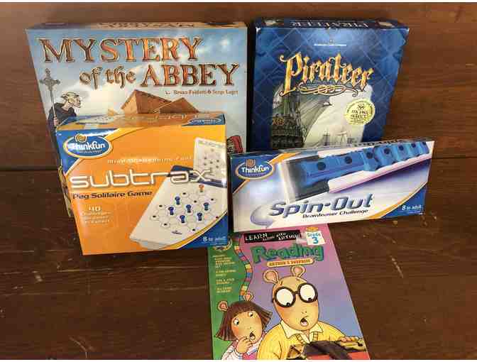 Mystery of the Abby, Pirateer, Spin, subtrax/solitaire, Arthur reading book