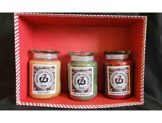 Specially made for Bridgton Academy, these three jarred candles will make a wonderful gift! Scents are Maine Wilderness (pine), Cozy Cabin, and Apple Walnut Bread and come in a holiday gift box.
