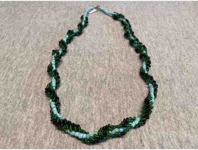 This item was designed at the School For The Disabled. It is a 21" beaded necklace that has a metal clasp. It is basic, but stylish.