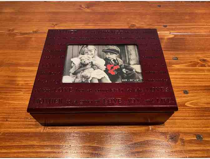 This is the perfect jewelry box to hold the necklace or bracelet that you just bid on. You can place your favorite photo in the lid, and place your favorite trinkets inside.