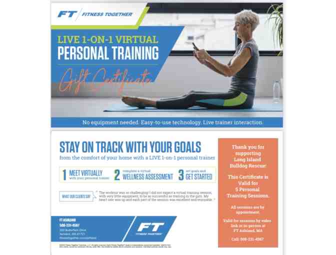 Stay on track with your goals, especially in this holiday season. Now is your chance to have FIVE one-on-one classes with your very own trainer! Right in the comfort of your home and on your computer. No excuses! What could be easier!