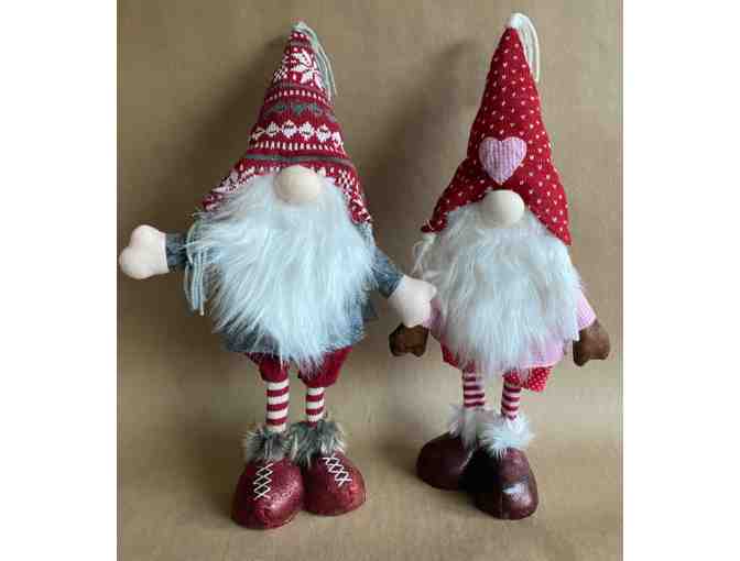 All dressed up for winter and ready to go to your house. This charming Gnome couple measures 17 inches tall and will look fantastic among your Xmas decor! Beautifully detailed with their fluffy beards and enormous laced shoes they are a sight to behold!