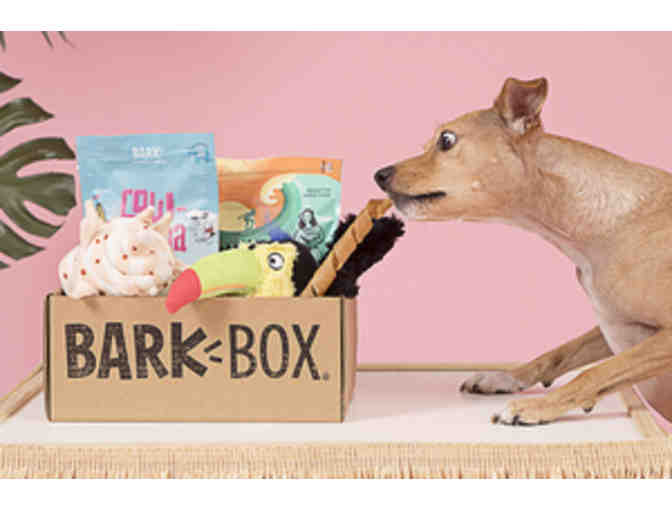 Gift card for a 1 month subscription to BarkBox. Every BarkBox has 2 innovative toys, 2 all-natural bags of treats, and a chew, curated from each month's unique themed collection. BarkBox is a monthly themed subscription of all-natural treats and clever toys. They have reached more than 2 million dogs' homes all across the world and expanded into oodles of new product categories and thousands of retail locations. Also, they built a park!