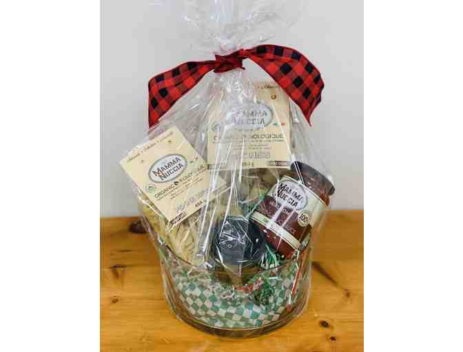 Grab Eataly's different styles of pasta, gherkin-stuffed manzanilla olives along with Mamma Nuccia's roasted garlic sauce, all together in a beautiful glass bowl.