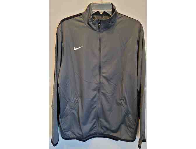 Look sharp during your workouts with this Nike men's jacket. This 100% polyester jacket features a dri-fit fabric design to keep you cool even when you're working hard. Two front pockets to keep your items secure. Color is anthracite and size is a men's large.
