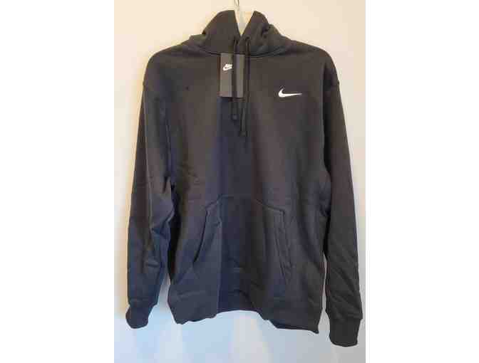 Keep warm and cozy this winter with this Nike team club pullover hoodie. This cotton/polyester mix sweatshirt will beat the cold and keep you looking nice. Size is a men's large and color is black.