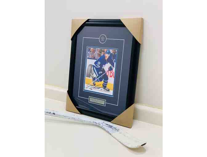 Calling all Toronto Maple Leafs fans! Get your hands on this autographed hockey stick used in-game by right-wing player Jason Spezza #19 and an autographed picture of the player, signed by himself, in a custom black frame with double-matting and regular glass, measuring 20.5"L by 16.5"W. True Leafs fans and collectors will love this!