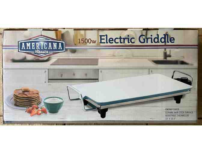 Ceramic nonstick surface 19" x 10 1/2" adjustable thermostat.