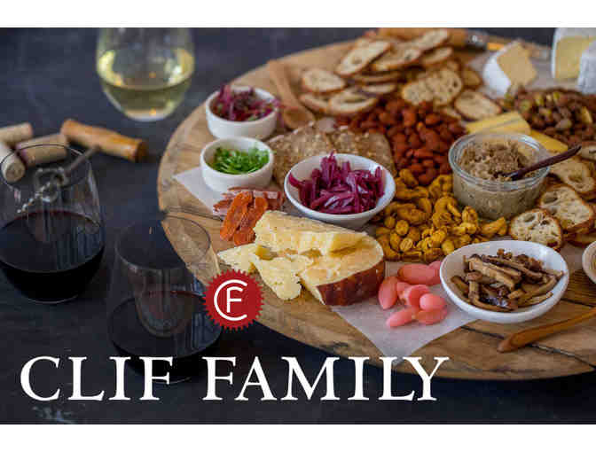 Includes: Seasonal White Wine and Red Wine Tasting Experience + Clif Family Farm board for four (4) people.
