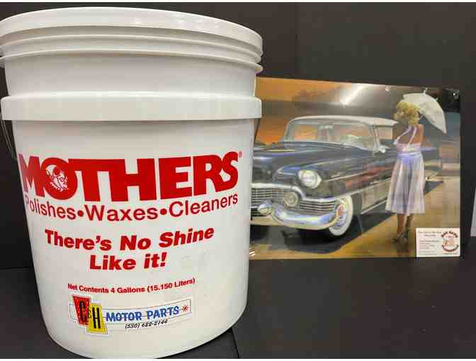 An elegant lady alongside a classic Cadillac adorns this stunning metal wall plaque, perfect for any man cave, office or shop and courtesy of Man Cave Placerville. To care for your own classy car, this prize also includes a bucket full of the finest car wash goodies from C&H Motor Parts - Mothers protectant and wheel & tire cleaner, Mothers car washing soap and foaming glass cleaner, large sponge, and three microfiber towels.