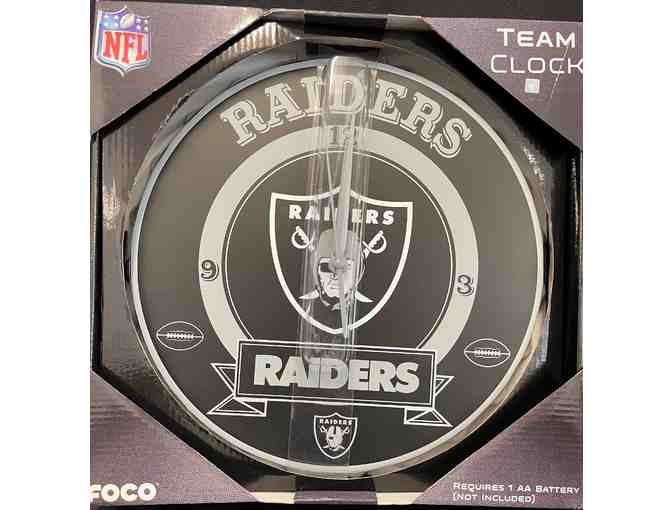 For those Raider fans out there, this is a perfect prize for you. A Raider Team Clock to hang on your most visible wall that will make you smile every time you see it. Really . . . it is "time" for the Raiders.