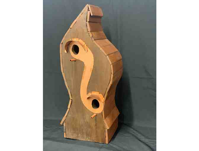 Having birds in your yard brings such joy, and those birds will love you for providing them this fun and imaginative birdhouse for their home. Handcrafted by Lee Pieracci, the curved design of the 23" tall birdhouse features two copper covered perches leading up to the top that is suggestive of a quail's topknot.