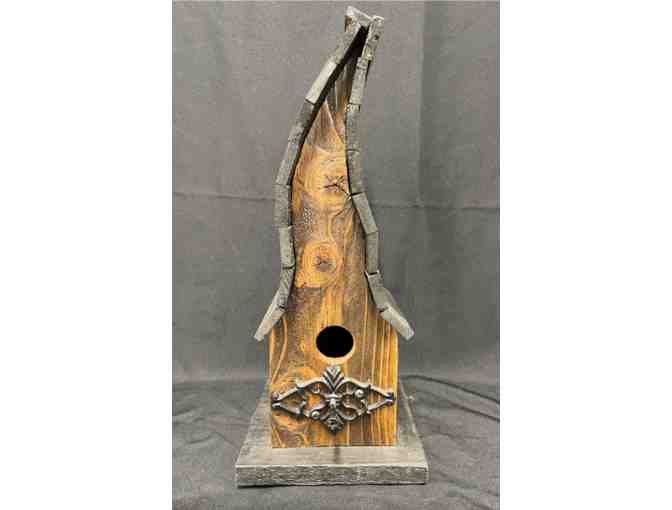 Reminiscent of the Mother Goose Nursery Rhyme, this little crooked house is for birds and will provide a magical home to the feathered friends that grace your yard. This whimsical abode, handcrafted by Lee Pieracci, stands 17" in height and will add a little enchantment for your pleasure.