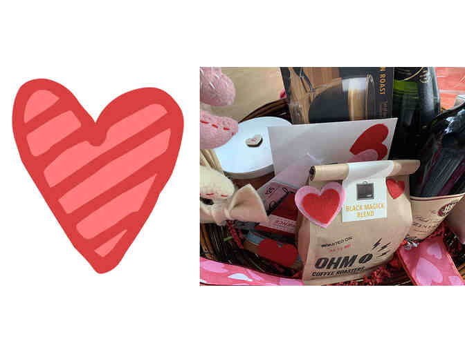 You will be ready to show your Valentine lots of love with this beautiful gift basket; brimming with gift cards, wine, coffee, chocolates, decorations, and many more treats.