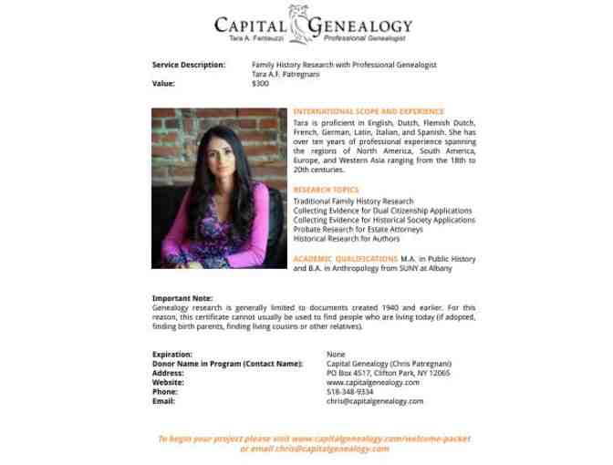 About: Tara Ashley Fantauzzi Patregnani, Professional Genealogist