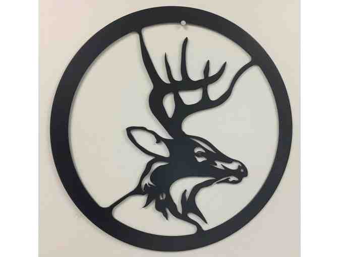 Precision laser cut out of 16 gauge steel, this image of a buck is perfect for the hunter in your life. It will be powder painted in black. Measures 16" in diameter. Both sides are finished so can be reversed.