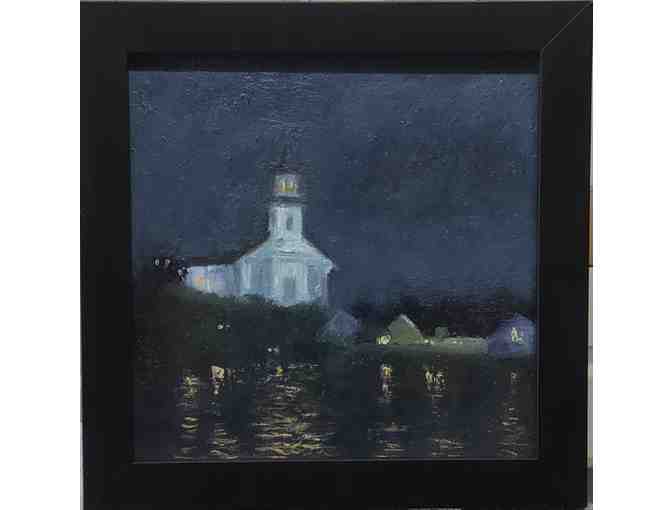 10 x 10 painting, with black frame measuring 12 x 12 in total. Oil on deep edge canvas. About the artist: I primarily paint the landscape en plein air, in oil and pastel, and can often be found in the Outer Cape, (Provincetown) or on Martha’s Vineyard. Her work can be seen in Julie Heller Gallery in Provincetown. http://carolcaradimosfineart.com/