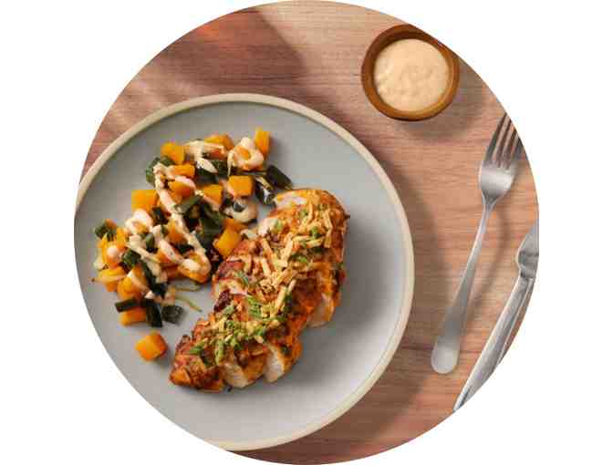 Fresh, pre-portioned ingredients will be delivered right to your door. You'll be able to create and plate exciting dishes with using step-by-step recipe cards.