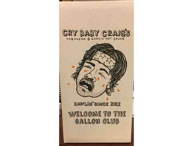 You know you love it,so don't run out with this gallon of Cry Baby Craig's original Habanero & Garlic Hot Sauce. It's a perfect combination of habanero pepper, garlic goodness and secret spices that pairs well with meats, burgers, eggs, pizza...yea just about anything! Cry Baby Craig's is located in historic downtown Faribault.