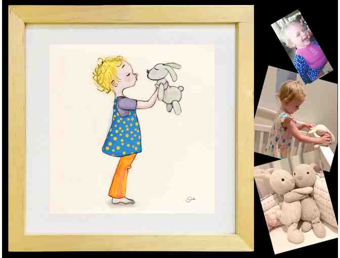 Send a photo of your child and his/her favorite lovey or snuggly pet, tell me about your child's future dream jobs or favorite thing to do and you will receive an approximately 10"x10" personalized unique framed portrait illustration of your child by Walgrove's incredibly talented Gela Kalaitzidis.