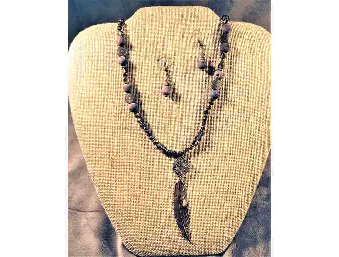 Feather, Druzy, and Swarovski Necklace and Earring Set