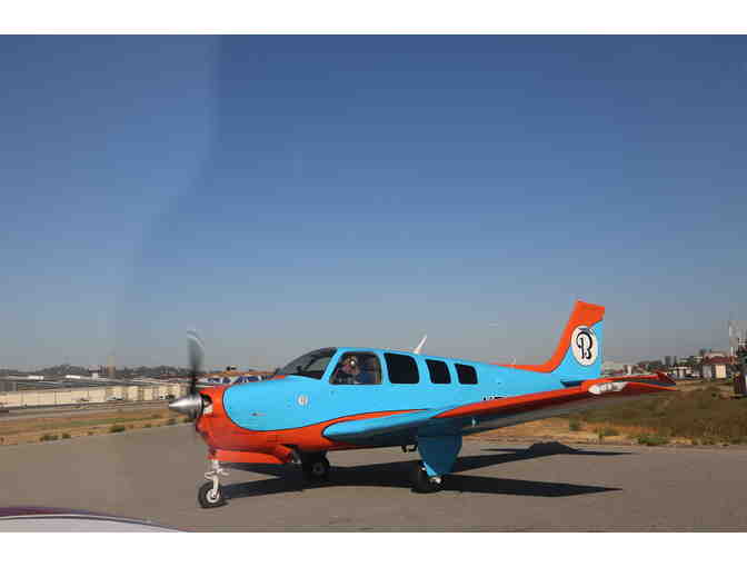 Buckle up for an exciting 30+ minute flight to view the Bay Area from the air in a Beechcraft A36 Bonanza light aircraft. Flight can accommodate up to five people (at least two children above pre-school age preferred for space reasons). Flight departs from San Carlos Airport.
