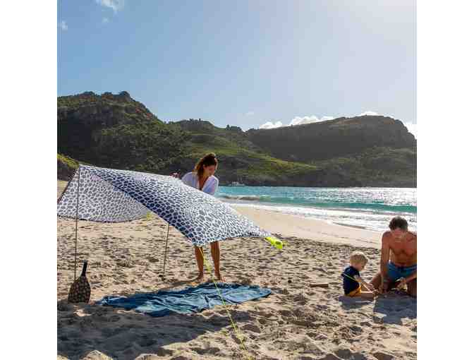 This bundle has everything you and your family need for an epic day at the beach! Includes one Yeti Hopper portable cooler (12-can capacity plus ice), a Vilebrequin x Fatboy Miasun portable beach tent (5'x7'), a Sand Cloud Turkish beach blanket and a portable cornhole game.