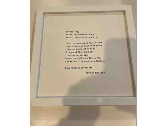 11"x11" white square frame with Norman Maclean quote with sawtooth hanger