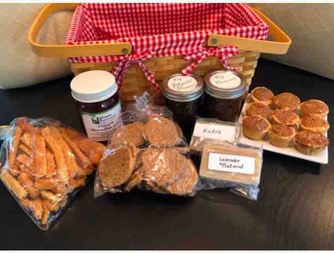 Hailing from the American South, where family recipes are tightly held secrets for generations, Alyson Gembala has created a very special picnic basket! Filled with Classic Cheese Straws, Pecan Tassies (mini pecan pies), and Oatmeal Crisps--all made from Aly's family recipes--this basket has it all. The homemade Fig Preserves and Fig Jalapeño Preserves are both made with figs grown from a tree that Aly's grandparents’ planted decades ago. But if you've never tasted Muscadine Jelly and Kudzu Blossom Jelly, both unique southern flavors, you are in for a special treat! Alyson will also include two aromatic bars of coveted Lavender soap that are handmade by women in the northeastern Mississippi Amish community. With this picnic basket in hand, all that's needed is a blue sky and a patch of green grass! To be delivered on a mutually agreed upon date.