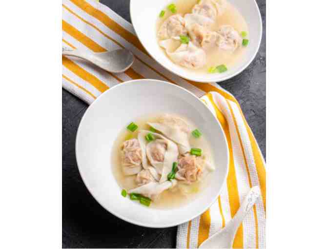 Generations of Leongs and Chans have been hand-wrapping delicious wonton together for both celebrations and casual family dinners. These delicious dumplings are a simple mixture of well-seasoned pork, shrimp, mushrooms, and water chestnuts. The winning bidder will choose to have the wonton boiled and served in a comforting broth, or fried and served in a hearty soup. Either version will warm both hearts and bellies! Serves 4-6 people and will be delivered on a mutually agreed upon date.