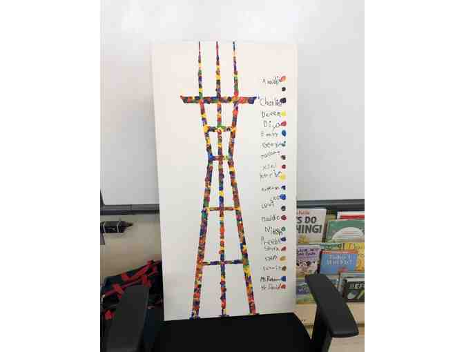 Support a super special group of "local artists" by bidding high on this Fingerprint painting of Sutro Tower made by every child in Room 4!