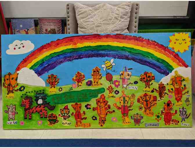 This one-of-a-kind artwork celebrates the Lunar New Year (Year of the Tiger) as well as the diversity and beauty of the Kinder Bees in Room 3. Kitty Panther is also represented to proudly show the four core traits of the Room 3 Kinder Bees: joy, courage, wisdom and harmony (along with a dash of love)!