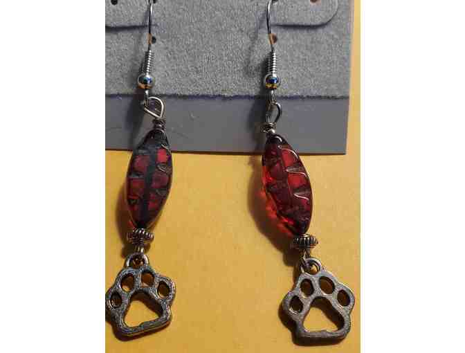 Earrings- Ruby Red Glass Stone with Paw Prints