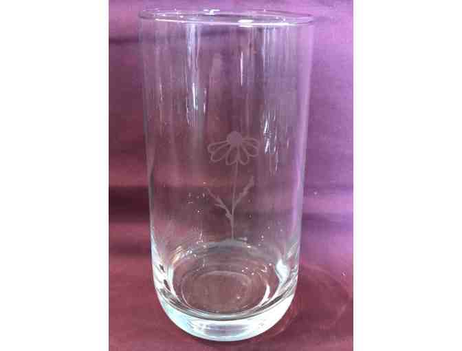 This cute 16 oz etched glass tumbler features a delicate etched design