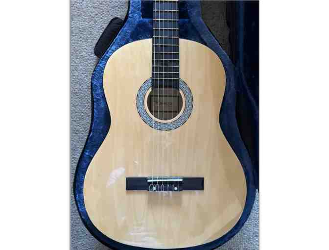 The Huntington GF39 is a full-sized nylon-string classical acoustic guitar that features basswood, Linden, and Catalpa wood construction. This guitar has great sound and playability making it an ideal guitar for any musician!