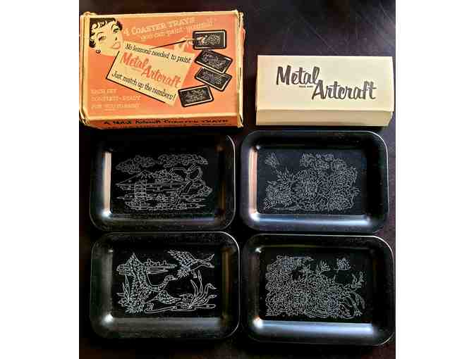 Mid-Century Modern Metal Artcraft Paint by Number Coaster Trays
