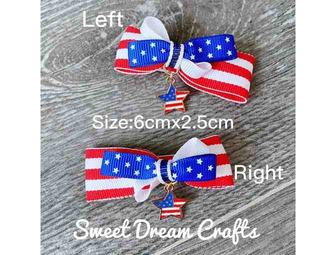 Handmade red white and blue hair clips made by WPE parent Cherrie Sa! She owns and operates Sweet Dream Baking and Crafts which specializes in handmade hair accessories as well delicious, beautiful desserts.